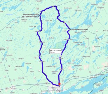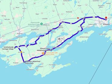 You leave the hotel at 9:10 a.m. with a short 1+ hour drive to the Heritage Village (free admission but a donation is appreciated). You'll explore the past for and hour or so and then a short 15 minute drive takes you to the Pounders Waterfront Pub and Patio for a delicious pub style lunch while enjoying the view. After lunch takes you through the enchanting Prince Edward County countryside to the Glenora Ferry. A 20 minute sail (free) and then a ride along the Lake Ontario waterfront gets you back to the hotel before 3:30 p.m.